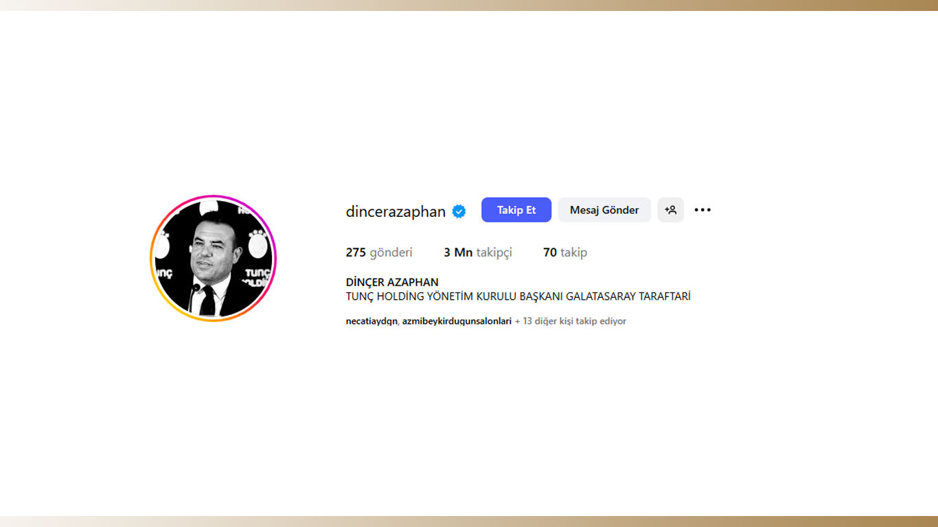 Ayrıca, profiline bakıldığında “Tunç Holding Yönetim Kurulu Başkanı” ve “Galatasaray Taraftarı” ifadeleriyle kimliğini öne çıkarması, takipçi kitlesinin hem iş hem spor camiasından geniş bir yelpazeye yayıldığını gösteriyor. Bu kadar geniş bir takipçi kitlesi, sosyal medya üzerinden yaptığı paylaşımların da ciddi oranda etkileşim aldığını ve iş dünyasında marka değerini daha da yukarıya taşıdığını gösteriyor.